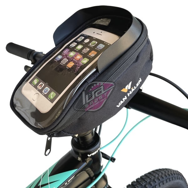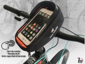 Porta celular: 18cm largo x 9cm ancho con elásticos de sujeción.