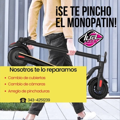 Reparamos pinchadura, hacemos además cambio de cámara y cubierta de monopatines eléctricos.
